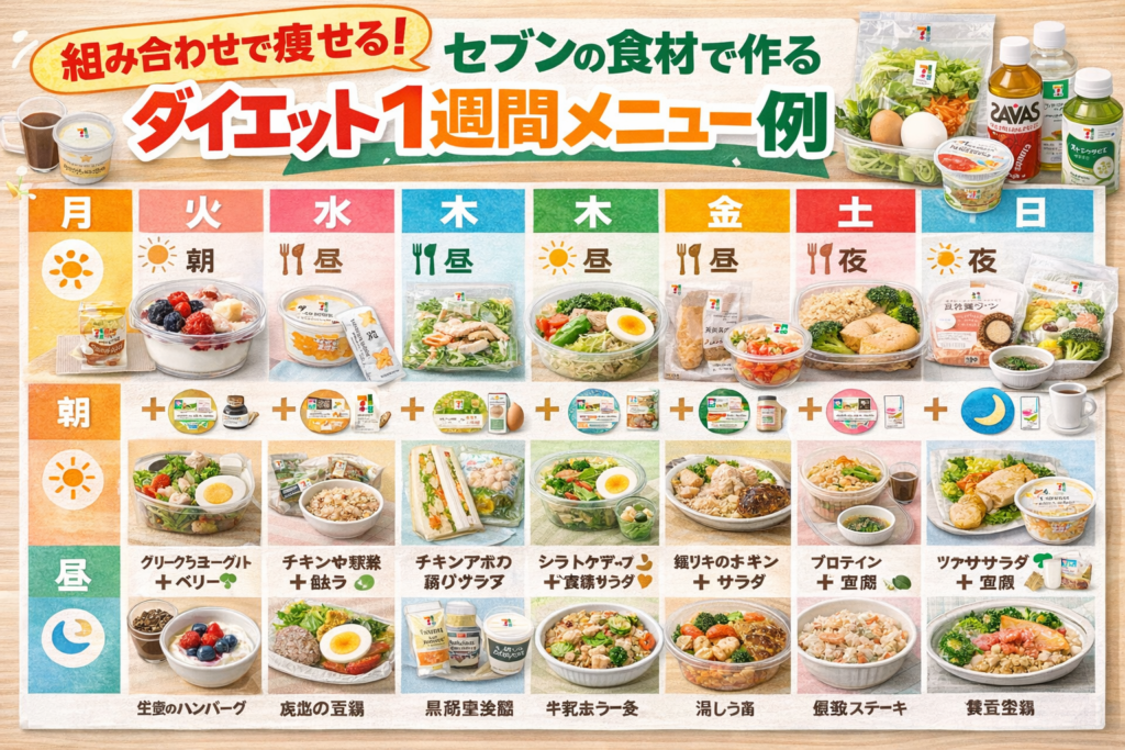 組み合わせで痩せる!セブンの食材で作るダイエット1週間メニュー例