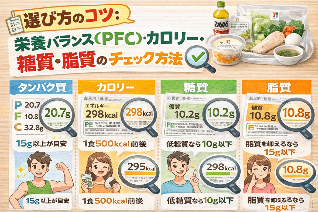 コンビニ商品は品揃えが安定しており、栄養表示が明確なため、短期間で食事の質を改善しやすい利点があります。