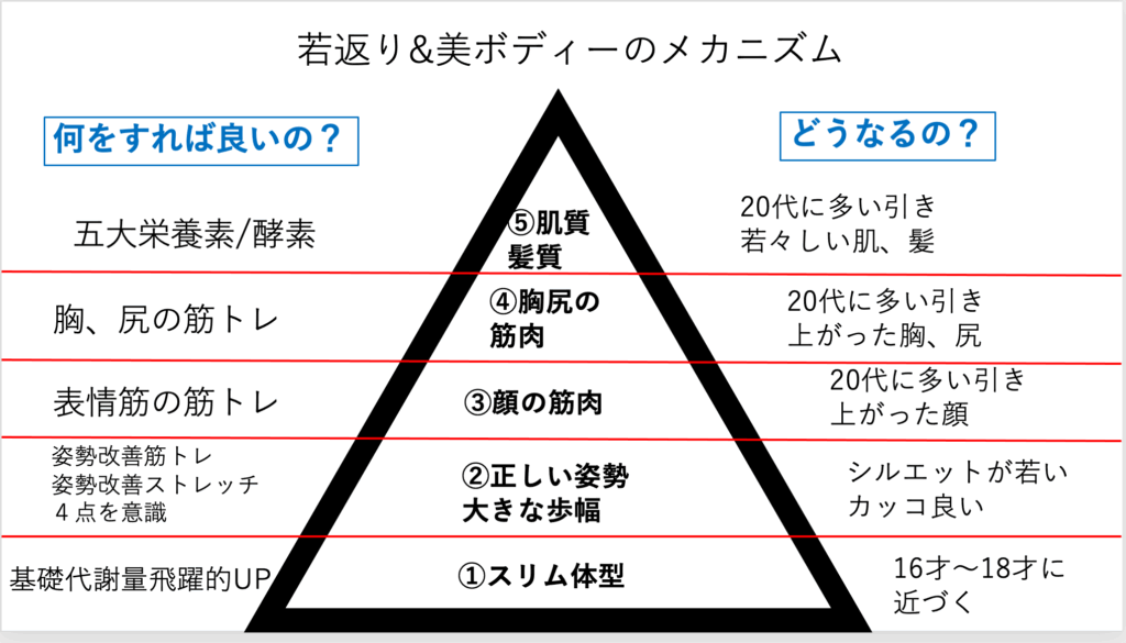 「若返りピラミッド」は私が、名付けた見た目年齢10才若えらせる技術で